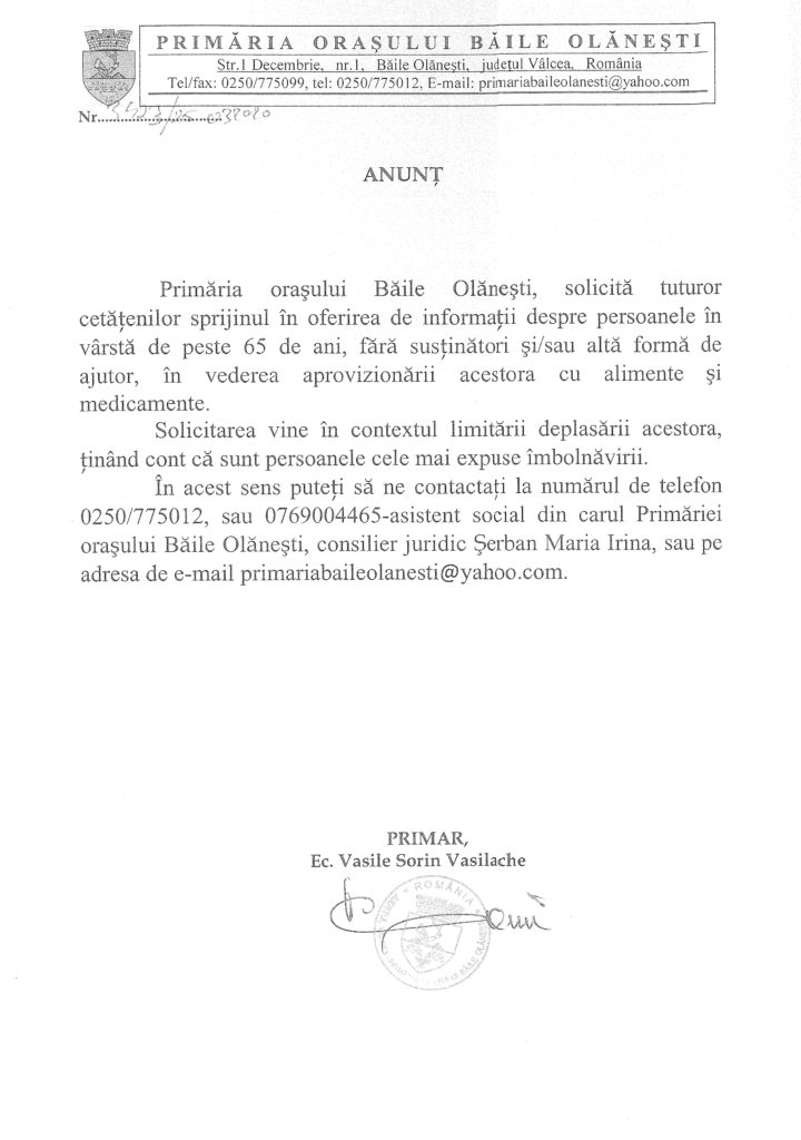Anunț important identificare persoane de peste 65 de ani